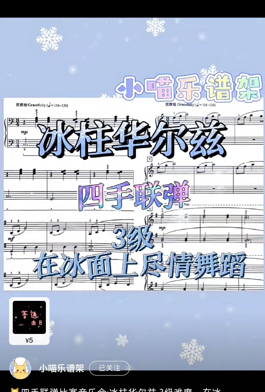 Home / 音乐风格 / 活泼 / 3级四手联弹比赛音乐会《冰柱华尔兹》5.8 3级四手联弹比赛音乐会《冰柱华尔兹》5.8 在冰上尽情舞蹈~ [audio mp3="/media/uploads/2022/03/冰柱华尔兹.mp3"][/audio] 乐谱咨询点击页面上方:联系我们/media/uploads/2022/03/冰柱华尔兹.mp3 用户评价 (0) 评价 目前还没有评价 成为第一个“3级四手联弹比赛音乐会《冰柱华尔兹》5.8” 的评价者 取消回复您的评级 * 评价… 完美 很好 普通 还行 很差 您的评价 *姓名 * 邮箱 * 保存我的姓名、电子邮件和网站,以便下次评论时使用。