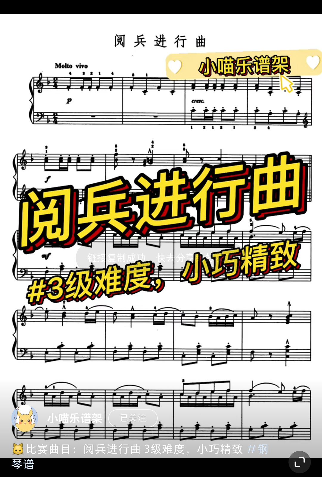 Home / 音乐风格 / 活泼 / 3级比赛可爱进行曲动感《阅兵进行曲》超高清9.9 3级比赛可爱进行曲动感《阅兵进行曲》超高清9.9 可爱的进行曲,比赛金曲 [audio mp3="/media/uploads/2022/01/阅兵进行曲.mp3"][/audio] 乐谱咨询点击页面上方:联系我们/media/uploads/2022/01/阅兵进行曲.mp3 用户评价 (0) 评价 目前还没有评价 成为第一个“3级比赛可爱进行曲动感《阅兵进行曲》超高清9.9” 的评价者 取消回复您的评级 * 评价… 完美 很好 普通 还行 很差 您的评价 *姓名 * 邮箱 * 保存我的姓名、电子邮件和网站,以便下次评论时使用。