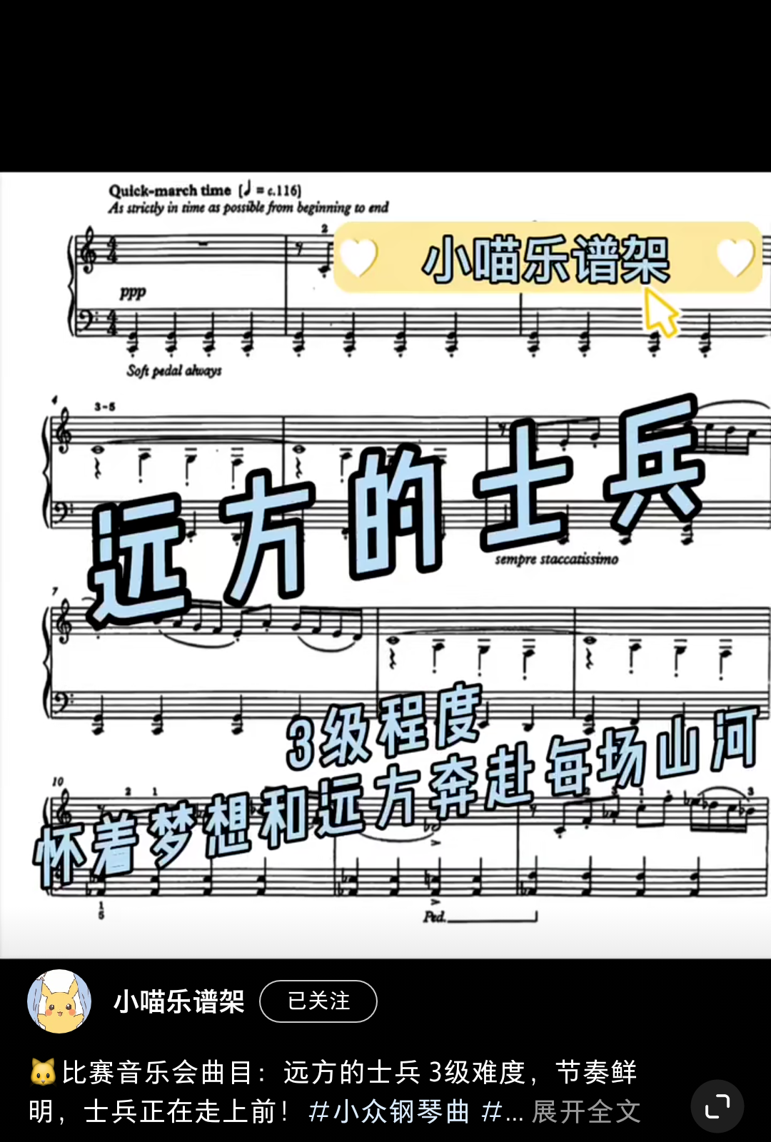 Home / 音乐风格 / 动感 / 3级比赛音乐会动感《远方的士兵》5.8 3级比赛音乐会动感《远方的士兵》5.8 节奏鲜明,士兵正在走上前! [audio mp3="/media/uploads/2022/01/远方的士兵.mp3"][/audio] 乐谱咨询点击页面上方:联系我们/media/uploads/2022/01/远方的士兵.mp3 用户评价 (0) 评价 目前还没有评价 成为第一个“3级比赛音乐会动感《远方的士兵》5.8” 的评价者 取消回复您的评级 * 评价… 完美 很好 普通 还行 很差 您的评价 *姓名 * 邮箱 * 保存我的姓名、电子邮件和网站,以便下次评论时使用。