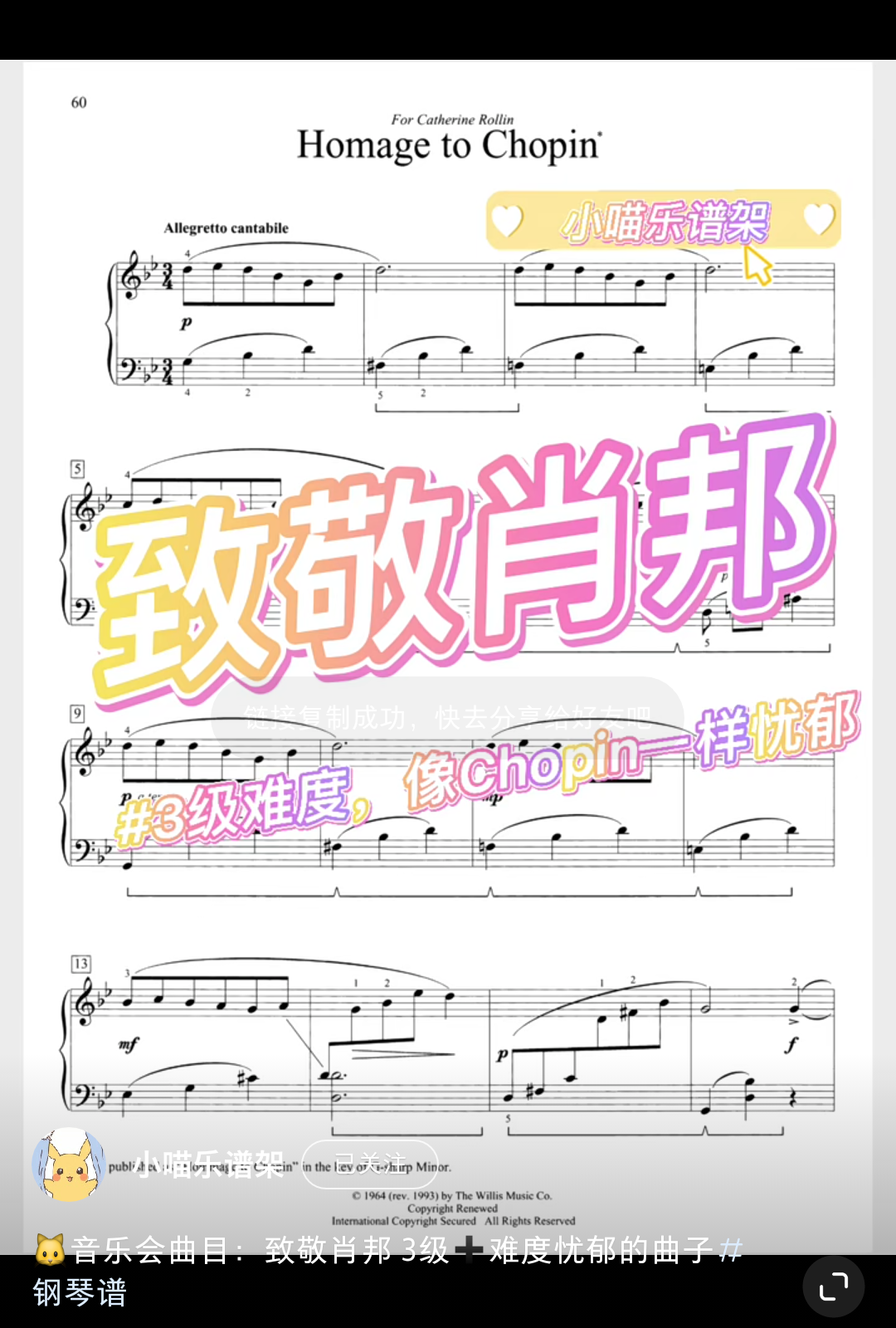 Home / 音乐风格 / 抒情 / 3级音乐会比赛优雅唯美抒情现代《致敬肖邦》超高清9.9 3级音乐会比赛优雅唯美抒情现代《致敬肖邦》超高清9.9 优雅唯美的现代钢琴曲 [audio mp3="/media/uploads/2022/01/致敬肖邦.mp3"][/audio] 乐谱咨询点击页面上方:联系我们/media/uploads/2022/01/致敬肖邦.mp3 用户评价 (0) 评价 目前还没有评价 成为第一个“3级音乐会比赛优雅唯美抒情现代《致敬肖邦》超高清9.9” 的评价者 取消回复您的评级 * 评价… 完美 很好 普通 还行 很差 您的评价 *姓名 * 邮箱 * 保存我的姓名、电子邮件和网站,以便下次评论时使用。