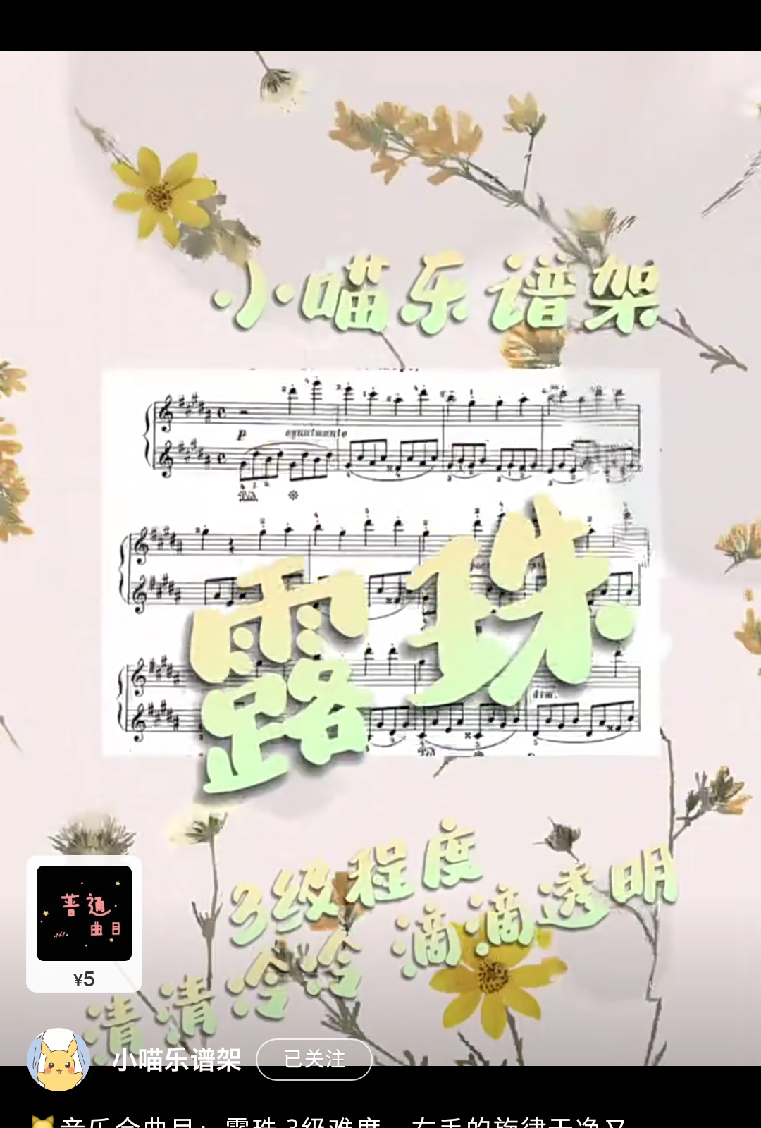 Home / 音乐风格 / 唯美 / 3级音乐会甜美唯美抒情可爱《露珠》5.8 3级音乐会甜美唯美抒情可爱《露珠》5.8 右手的旋律干净又美丽,像透明的露珠从窗台滴落 [audio mp3="/media/uploads/2022/03/露珠.mp3"][/audio] 乐谱咨询点击页面上方:联系我们/media/uploads/2022/03/露珠.mp3 用户评价 (0) 评价 目前还没有评价 成为第一个“3级音乐会甜美唯美抒情可爱《露珠》5.8” 的评价者 取消回复您的评级 * 评价… 完美 很好 普通 还行 很差 您的评价 *姓名 * 邮箱 * 保存我的姓名、电子邮件和网站,以便下次评论时使用。