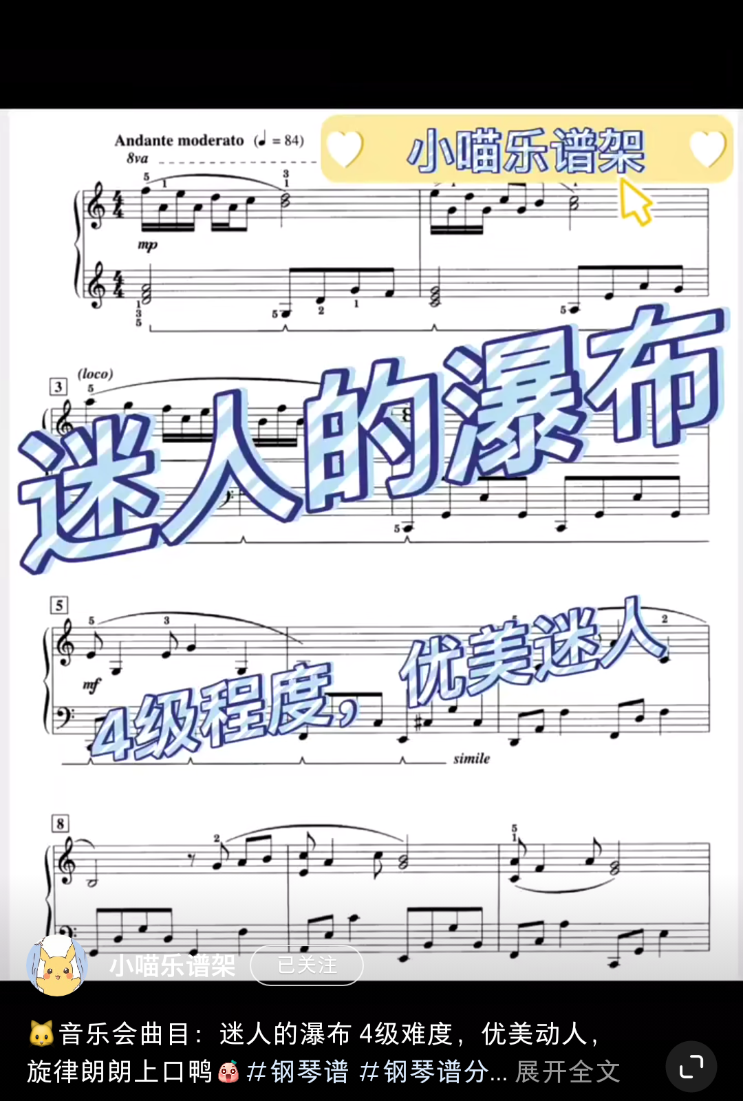 Home / 音乐风格 / 唯美 / 4级抒情唯美音乐会曲目《迷人的瀑布》 4级抒情唯美音乐会曲目《迷人的瀑布》 优美动人,旋律朗朗上口 [audio mp3="/media/uploads/2022/03/迷人的瀑布.mp3"][/audio] 乐谱咨询点击页面上方:联系我们/media/uploads/2022/03/迷人的瀑布.mp3 用户评价 (0) 评价 目前还没有评价 成为第一个“4级抒情唯美音乐会曲目《迷人的瀑布》” 的评价者 取消回复您的评级 * 评价… 完美 很好 普通 还行 很差 您的评价 *姓名 * 邮箱 * 保存我的姓名、电子邮件和网站,以便下次评论时使用。