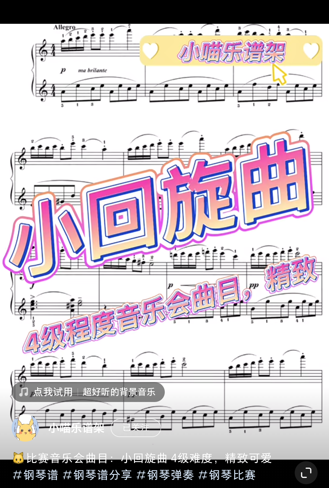 Home / 音乐风格 / 动感 / 4级比赛音乐会灵动可爱活泼《小回旋曲》5.8 4级比赛音乐会灵动可爱活泼《小回旋曲》5.8 精致可爱 [audio mp3="/media/uploads/2022/03/小回旋曲.mp3"][/audio] 乐谱咨询点击页面上方:联系我们/media/uploads/2022/03/小回旋曲.mp3 用户评价 (0) 评价 目前还没有评价 成为第一个“4级比赛音乐会灵动可爱活泼《小回旋曲》5.8” 的评价者 取消回复您的评级 * 评价… 完美 很好 普通 还行 很差 您的评价 *姓名 * 邮箱 * 保存我的姓名、电子邮件和网站,以便下次评论时使用。