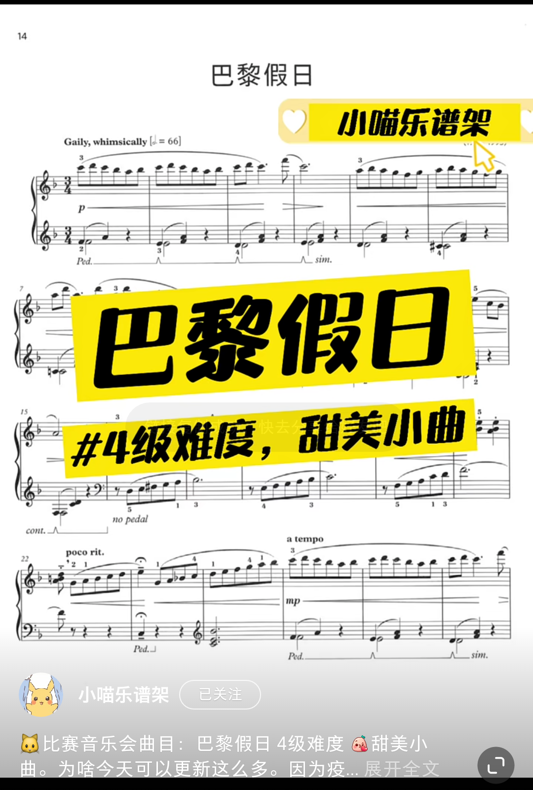 Home / 音乐风格 / 唯美 / 4级比赛音乐会甜美可爱抒情优美《巴黎假日》5.8 4级比赛音乐会甜美可爱抒情优美《巴黎假日》5.8 甜美动人 [audio mp3="/media/uploads/2022/03/巴黎假日.mp3"][/audio] 乐谱咨询点击页面上方:联系我们/media/uploads/2022/03/巴黎假日.mp3 用户评价 (0) 评价 目前还没有评价 成为第一个“4级比赛音乐会甜美可爱抒情优美《巴黎假日》5.8” 的评价者 取消回复您的评级 * 评价… 完美 很好 普通 还行 很差 您的评价 *姓名 * 邮箱 * 保存我的姓名、电子邮件和网站,以便下次评论时使用。
