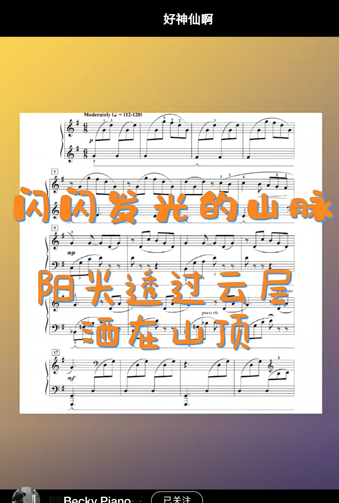 Home / 音乐风格 / 唯美 / 5级动感唯美比赛《闪闪发光的山脉》超高清9.9 5级动感唯美比赛《闪闪发光的山脉》超高清9.9 仿佛金色的阳光透过云层洒在山顶,发散出神圣的光 [audio mp3="/media/uploads/2022/03/闪闪发光的山脉.mp3"][/audio] 乐谱咨询点击页面上方:联系我们/media/uploads/2022/03/闪闪发光的山脉.mp3 用户评价 (0) 评价 目前还没有评价 成为第一个“5级动感唯美比赛《闪闪发光的山脉》超高清9.9” 的评价者 取消回复您的评级 * 评价… 完美 很好 普通 还行 很差 您的评价 *姓名 * 邮箱 * 保存我的姓名、电子邮件和网站,以便下次评论时使用。