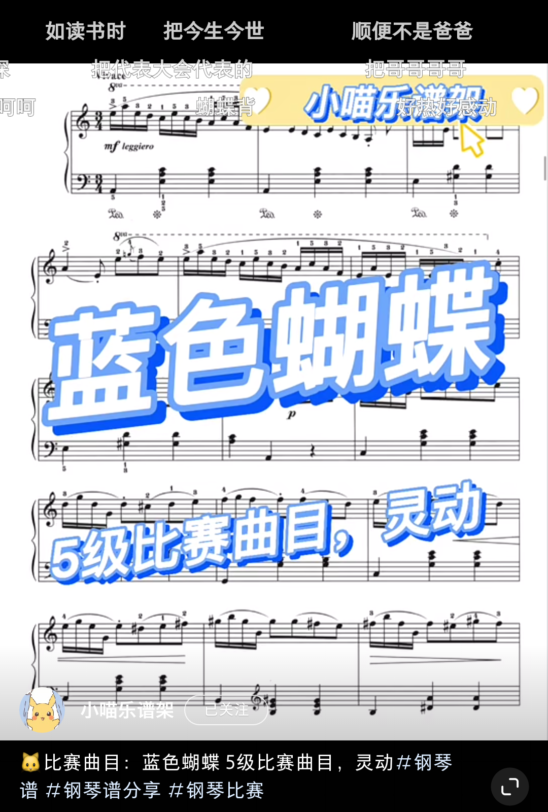 Home / 音乐风格 / 活泼 / 5级比赛练习曲动感活泼《蓝色蝴蝶》超高清9.9 5级比赛练习曲动感活泼《蓝色蝴蝶》超高清9.9 灵动 [audio mp3="/media/uploads/2022/03/蓝蝴蝶.mp3"][/audio] 乐谱咨询点击页面上方:联系我们/media/uploads/2022/03/蓝蝴蝶.mp3 用户评价 (0) 评价 目前还没有评价 成为第一个“5级比赛练习曲动感活泼《蓝色蝴蝶》超高清9.9” 的评价者 取消回复您的评级 * 评价… 完美 很好 普通 还行 很差 您的评价 *姓名 * 邮箱 * 保存我的姓名、电子邮件和网站,以便下次评论时使用。
