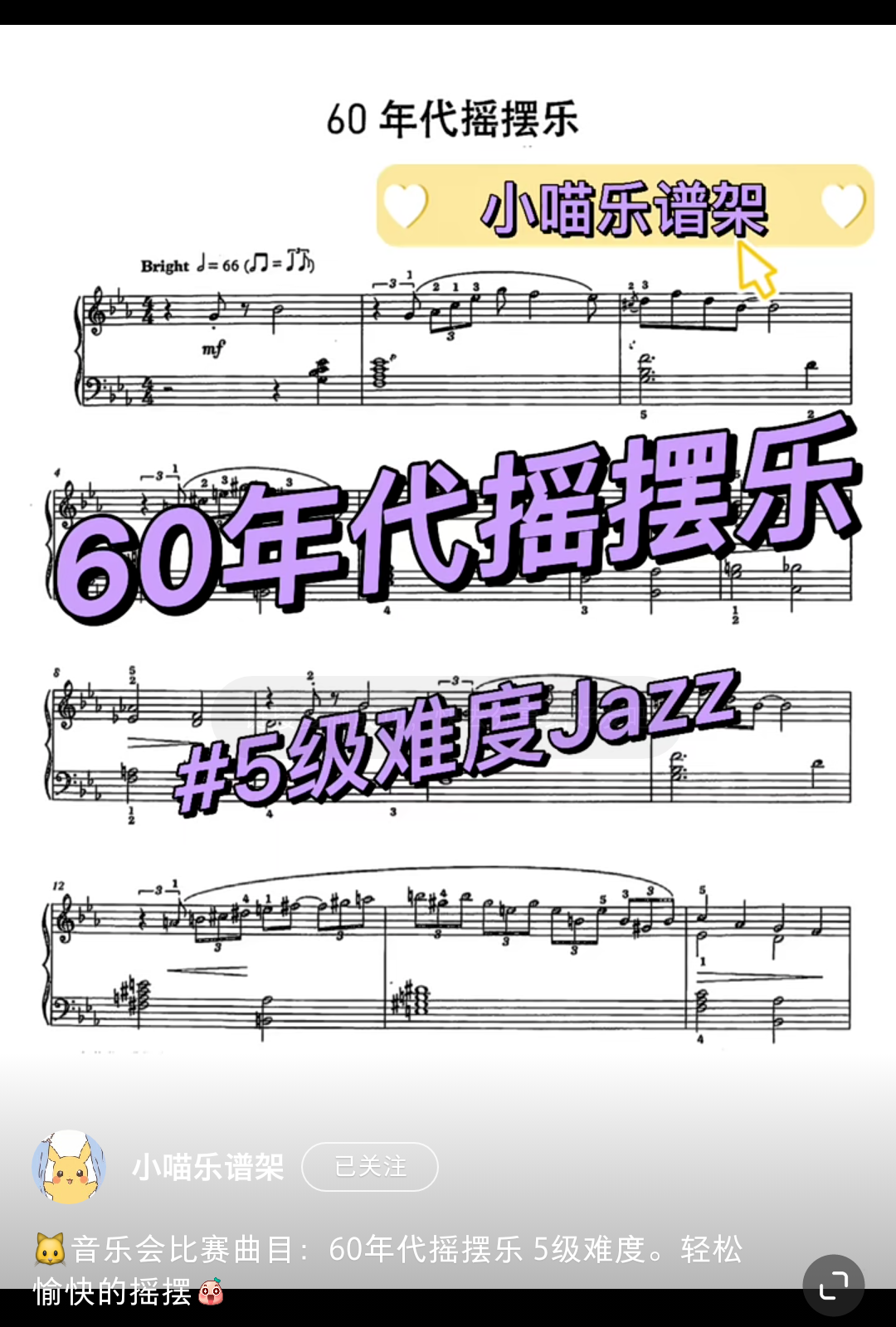 Home / 音乐风格 / 爵士 / 5级音乐会比赛爵士悠闲《60年代摇摆乐》5.8 5级音乐会比赛爵士悠闲《60年代摇摆乐》5.8 在酒吧摇晃着红酒杯 [audio mp3="/media/uploads/2022/03/60年代的摇滚.mp3"][/audio] 乐谱咨询点击页面上方:联系我们/media/uploads/2022/03/60年代的摇滚.mp3 用户评价 (0) 评价 目前还没有评价 成为第一个“5级音乐会比赛爵士悠闲《60年代摇摆乐》5.8” 的评价者 取消回复您的评级 * 评价… 完美 很好 普通 还行 很差 您的评价 *姓名 * 邮箱 * 保存我的姓名、电子邮件和网站,以便下次评论时使用。