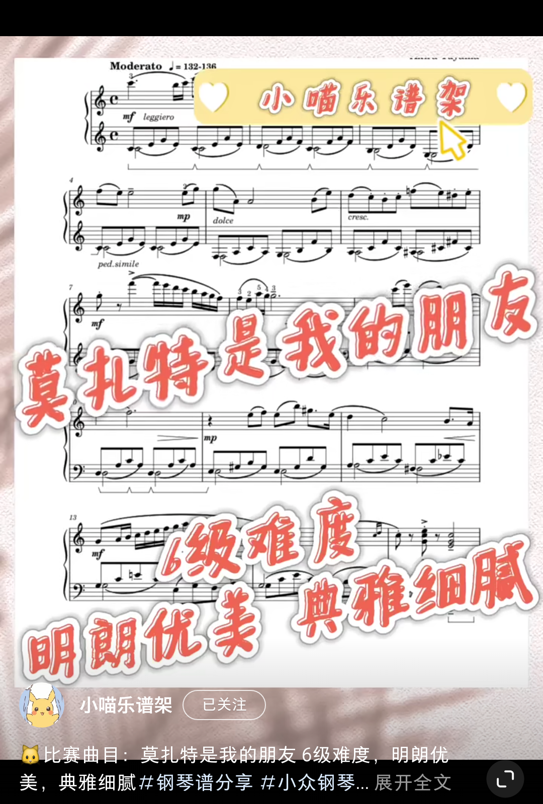 Home / 音乐风格 / 可爱 / 6级比赛可爱优美《莫扎特是我的朋友》超高清9.9 6级比赛可爱优美《莫扎特是我的朋友》超高清9.9 明朗优美,典雅细腻 [audio mp3="/media/uploads/2022/03/莫扎特是我的朋友.mp3"][/audio] 乐谱咨询点击页面上方:联系我们/media/uploads/2022/03/莫扎特是我的朋友.mp3 用户评价 (0) 评价 目前还没有评价 成为第一个“6级比赛可爱优美《莫扎特是我的朋友》超高清9.9” 的评价者 取消回复您的评级 * 评价… 完美 很好 普通 还行 很差 您的评价 *姓名 * 邮箱 * 保存我的姓名、电子邮件和网站,以便下次评论时使用。
